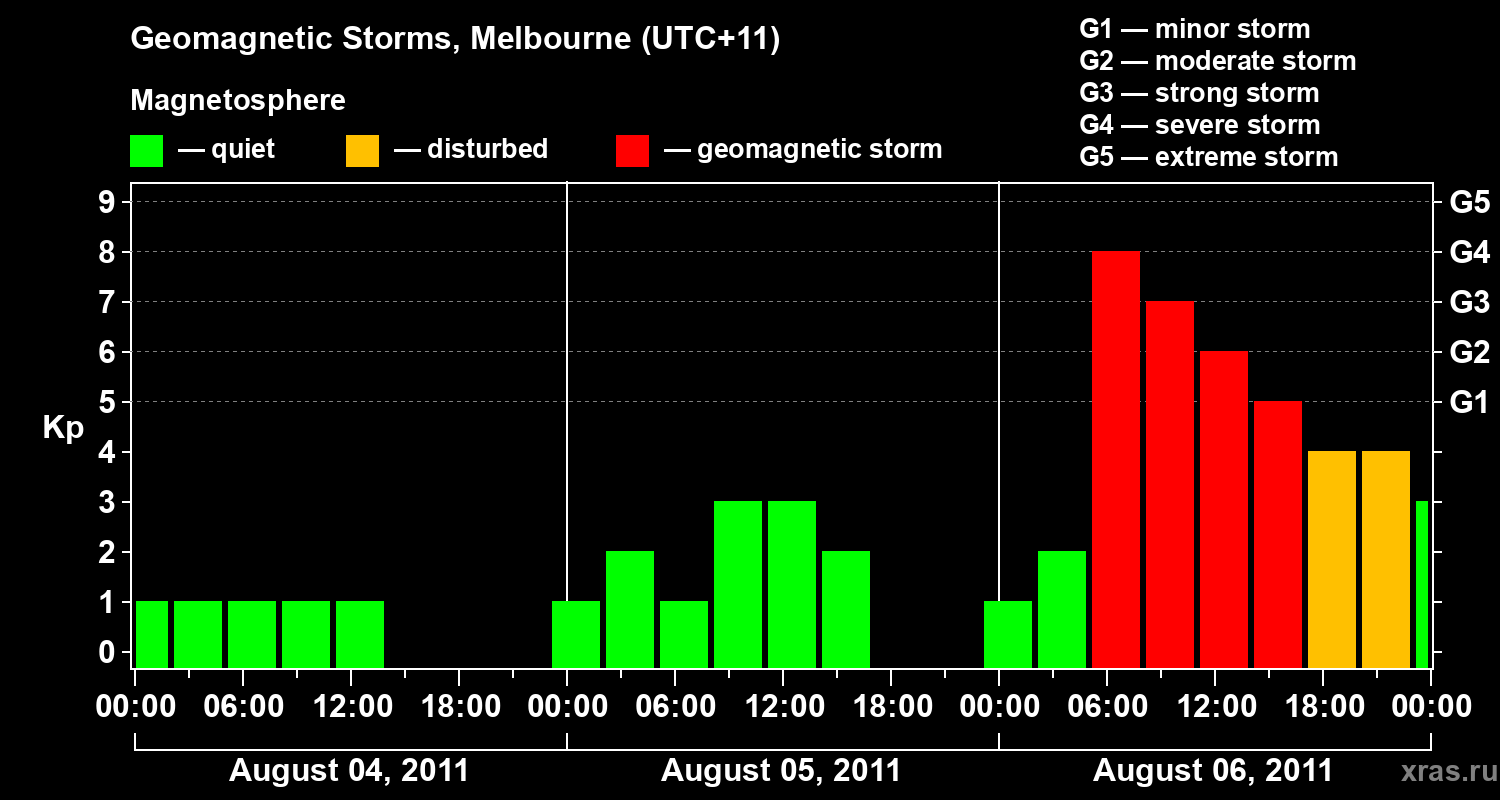 Geomagnetic storms in Melbourne — Aug 06, 2011