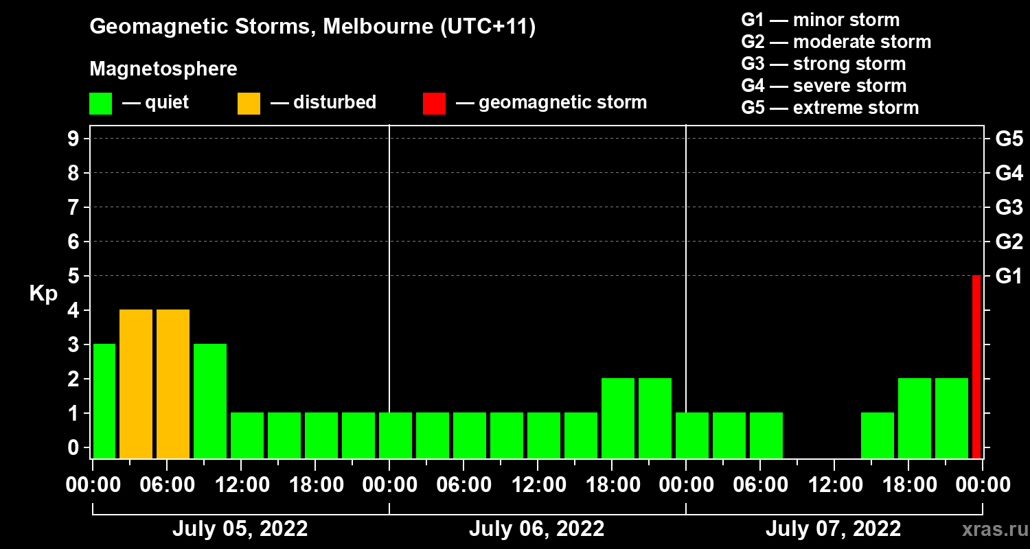 Geomagnetic storms in Melbourne on Jul 07, 2022