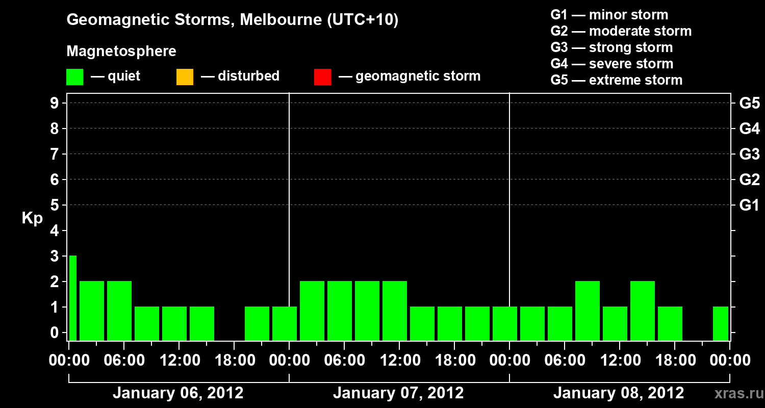 Geomagnetic storms in Melbourne on Jan 08, 2012