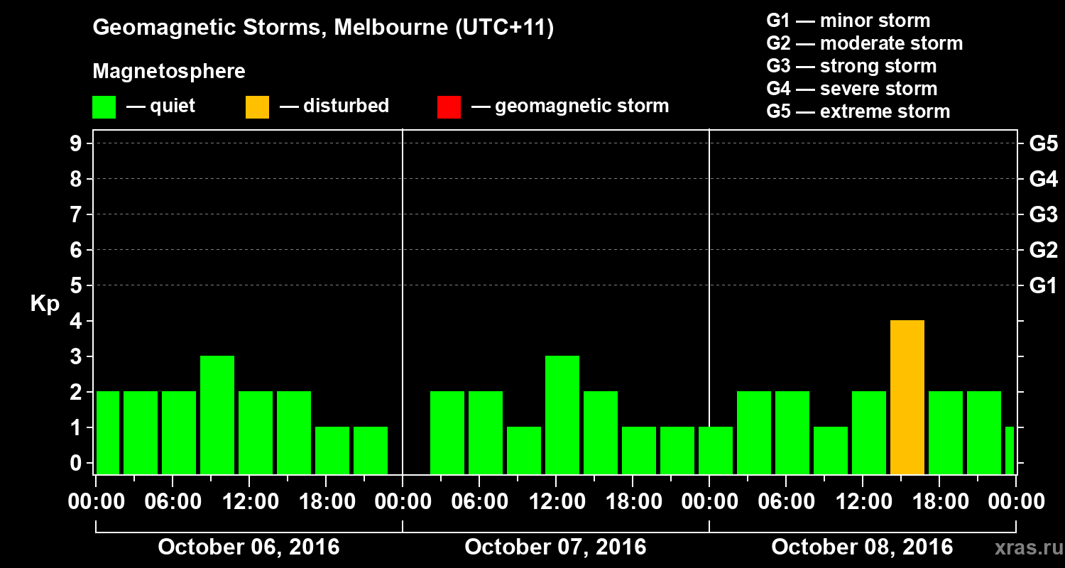 Geomagnetic storms in Melbourne on Oct 08, 2016
