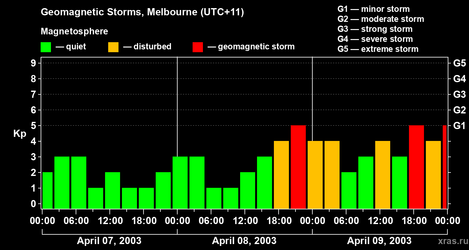 Geomagnetic storms in Melbourne on Apr 09, 2003