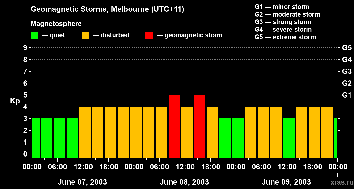 Geomagnetic storms in Melbourne — Jun 09, 2003