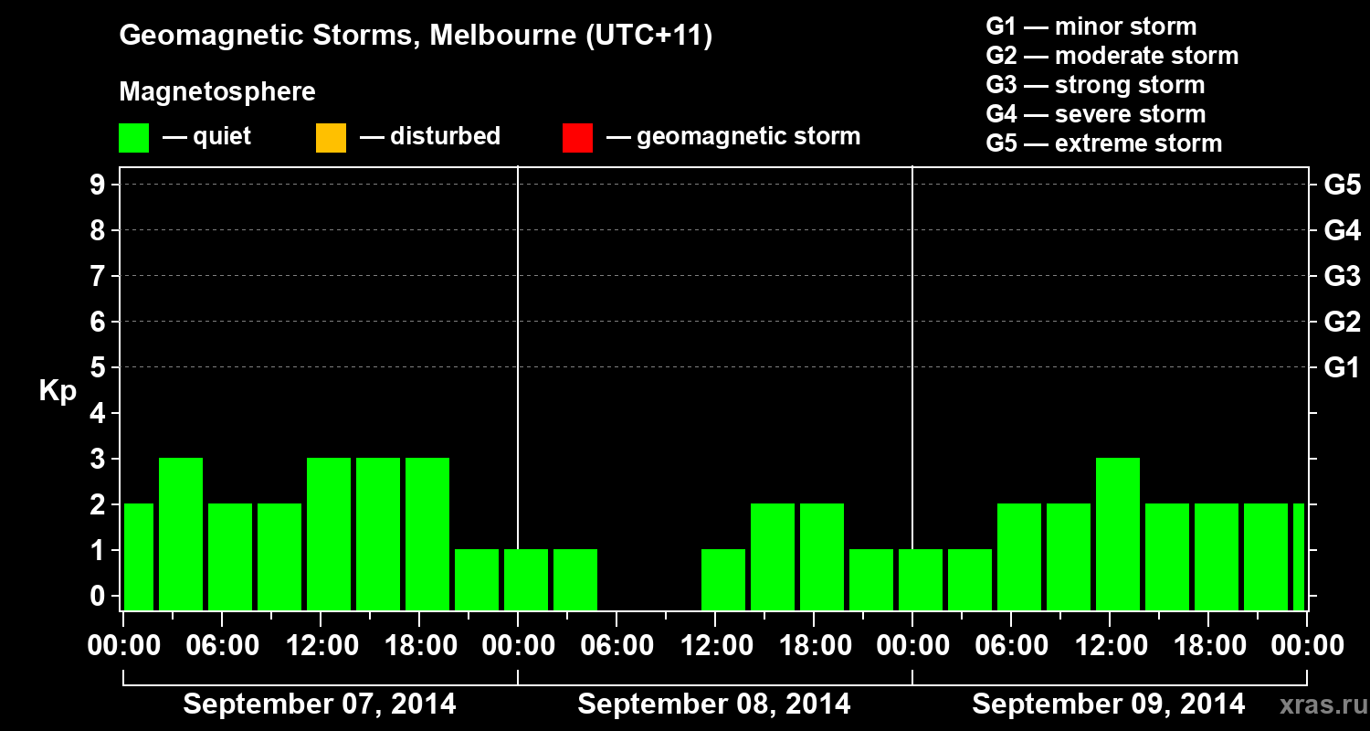 Geomagnetic storms in Melbourne on Sep 09, 2014