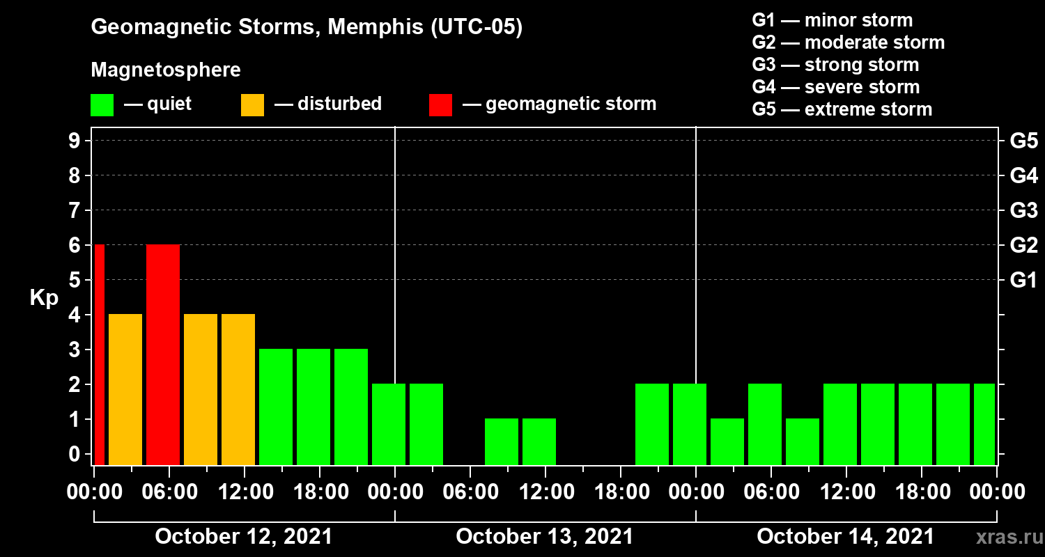 Geomagnetic storms in Memphis — Oct 14, 2021