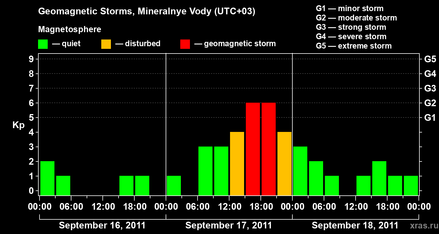 Geomagnetic storms in Mineralnye Vody on Sep 18, 2011