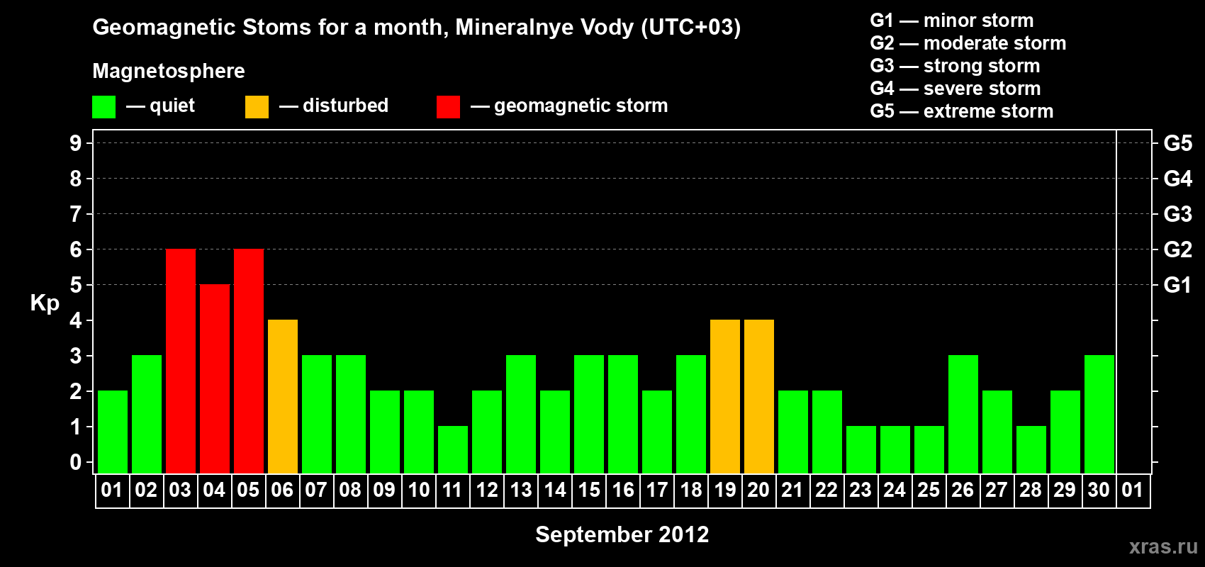 Geomagnetic storms in Mineralnye Vody in September 2012
