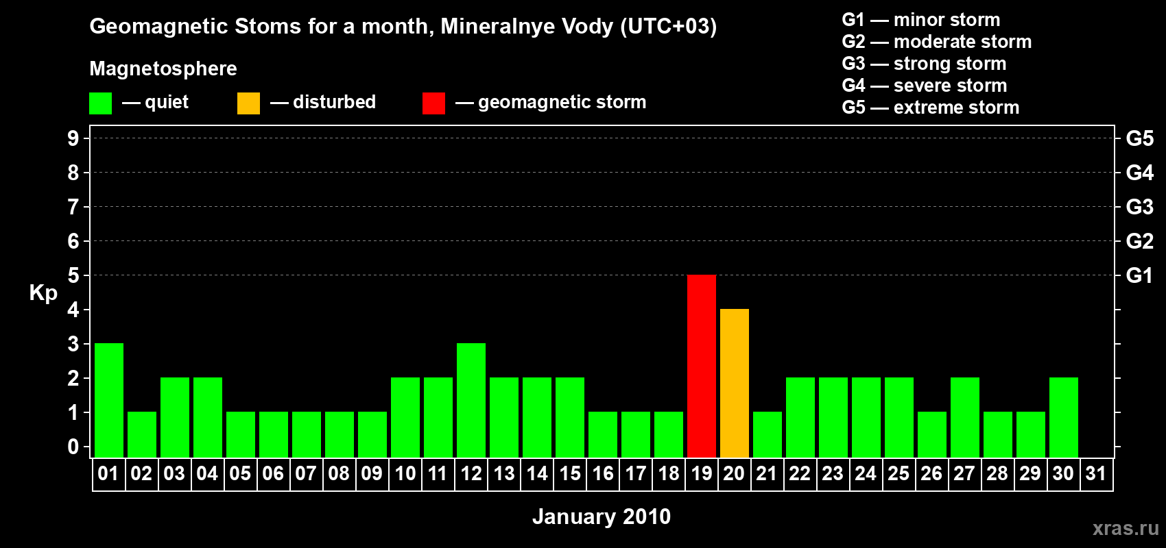 Geomagnetic storms in Mineralnye Vody in January 2010