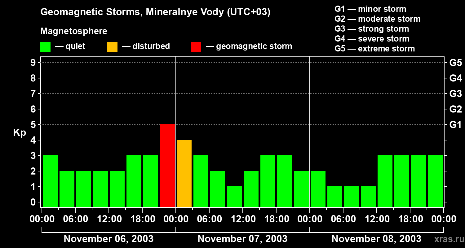 Geomagnetic storms in Mineralnye Vody on Nov 08, 2003