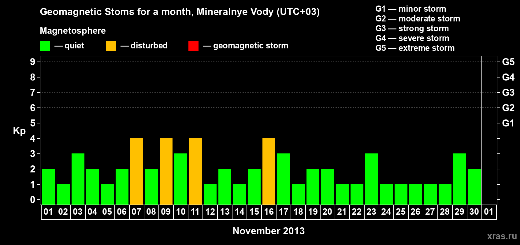 There were no days with an increased level of geomagnetic disturbance in November 2013