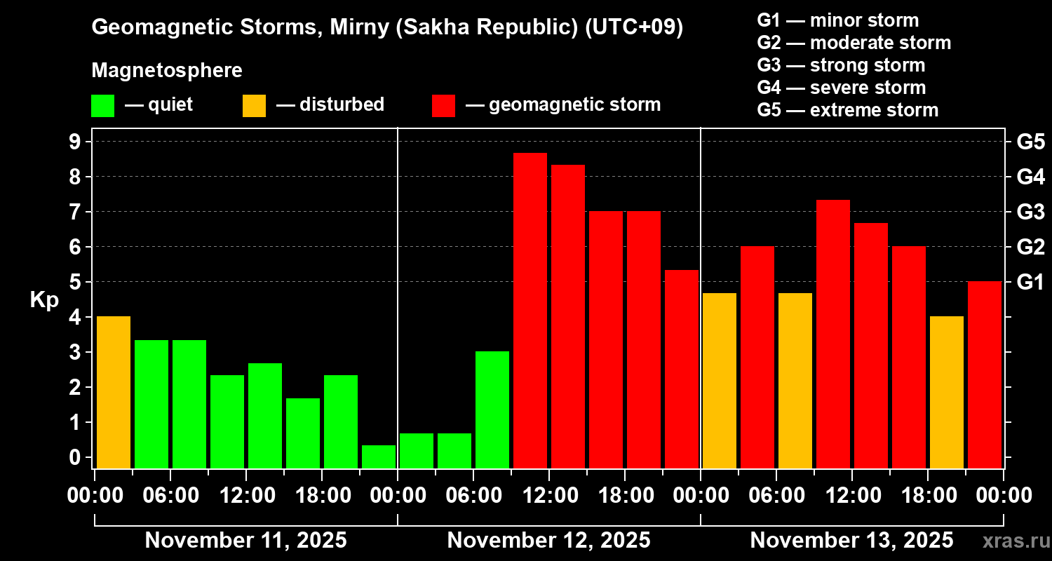 Geomagnetic storms in Mirny (Sakha Republic) — Nov 13, 2025