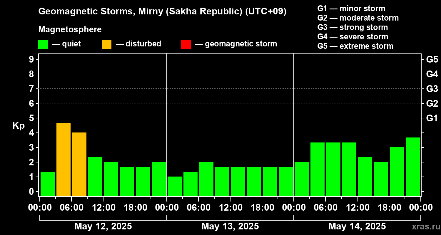 Geomagnetic storms in Mirny (Sakha Republic) — May 14, 2025