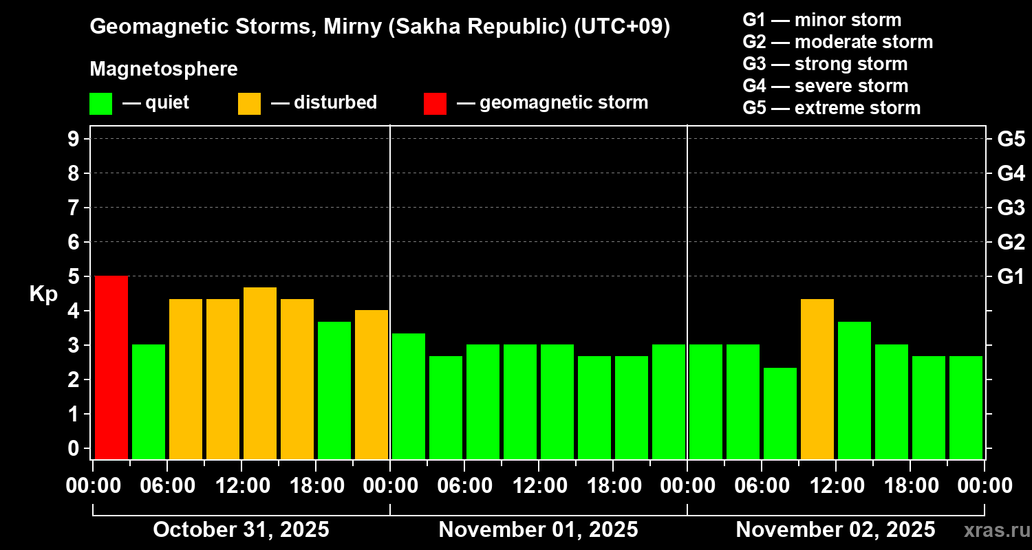 Geomagnetic storms in Mirny (Sakha Republic) — Nov 02, 2025