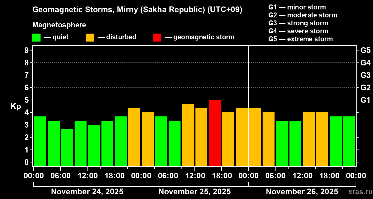Geomagnetic storms in Mirny (Sakha Republic) — Nov 26, 2025