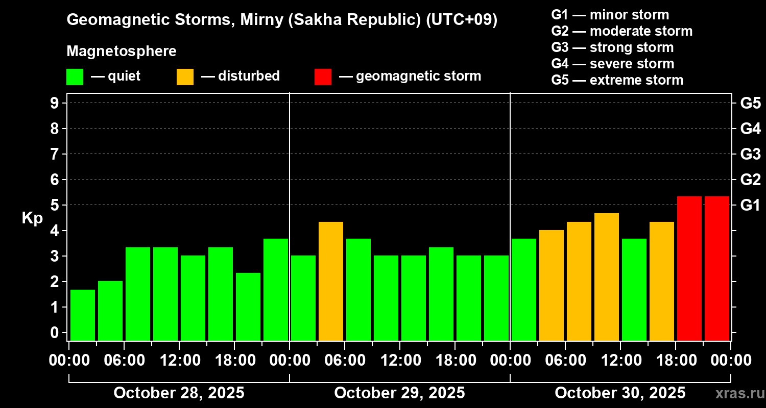 Geomagnetic storms in Mirny (Sakha Republic) — Oct 30, 2025
