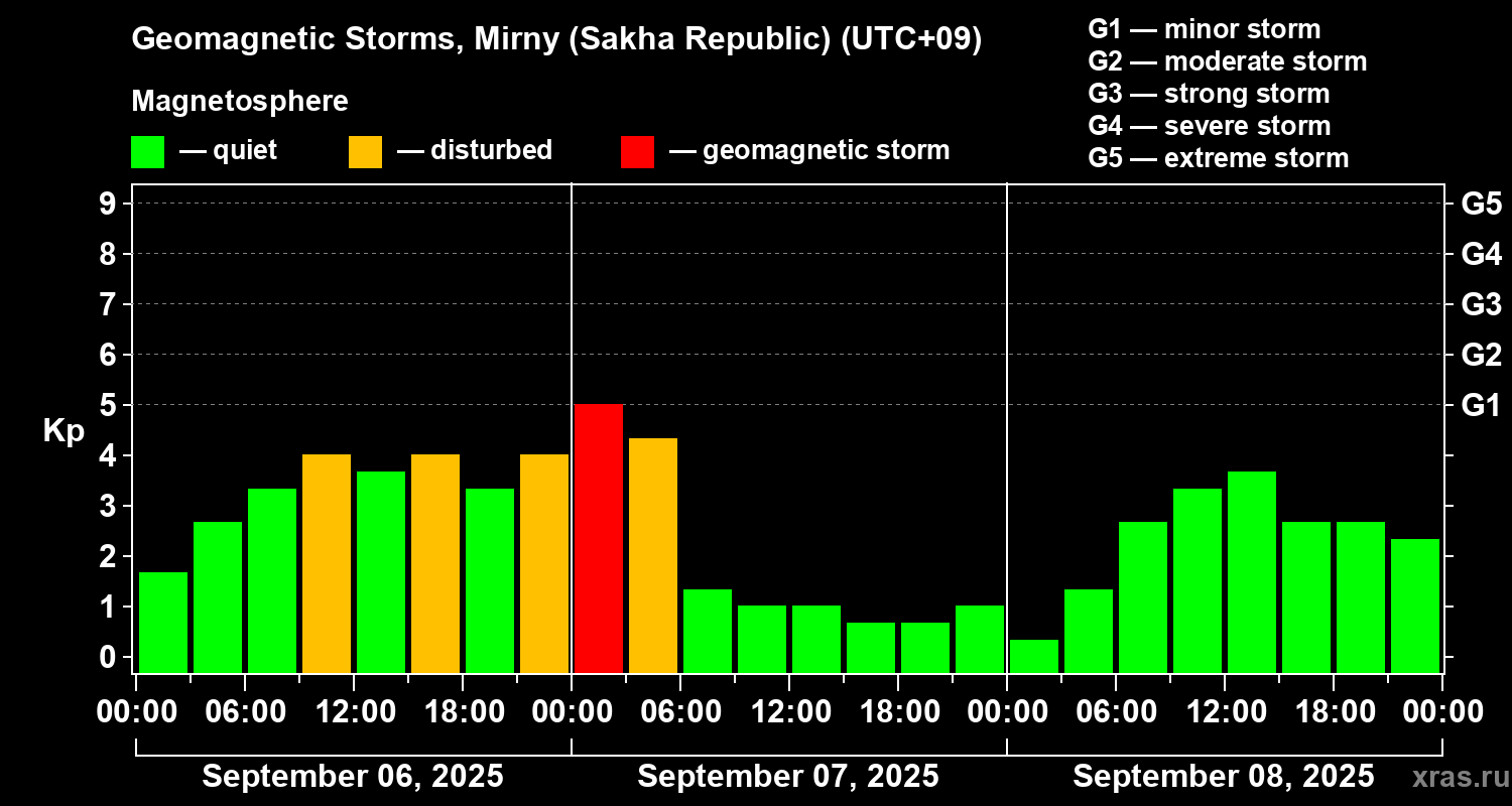 Geomagnetic storms in Mirny (Sakha Republic) — Sep 08, 2025