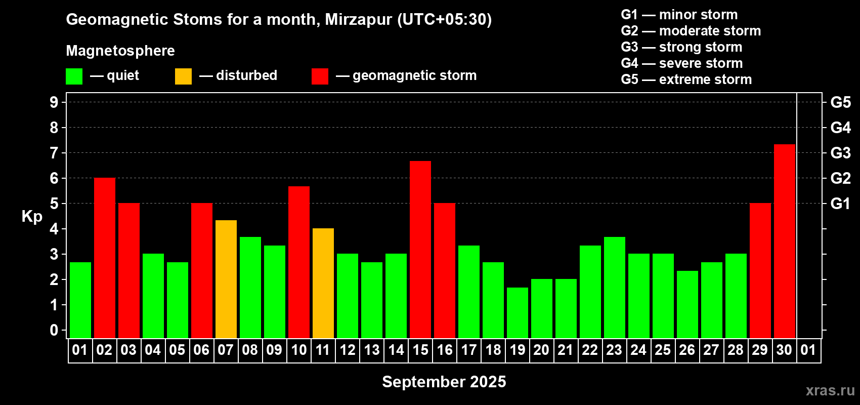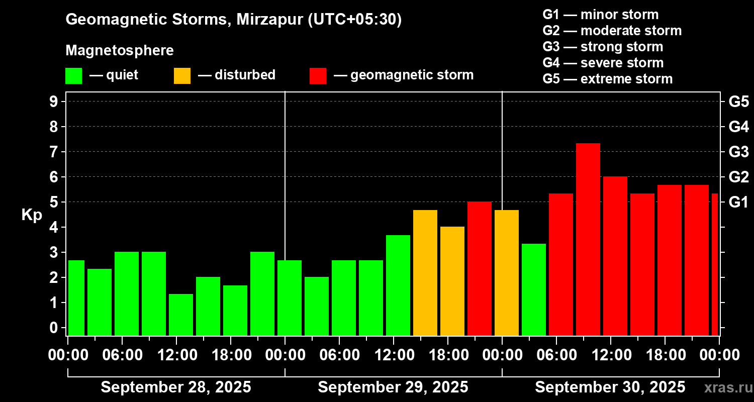 Geomagnetic storms in Mirzapur — Sep 30, 2025