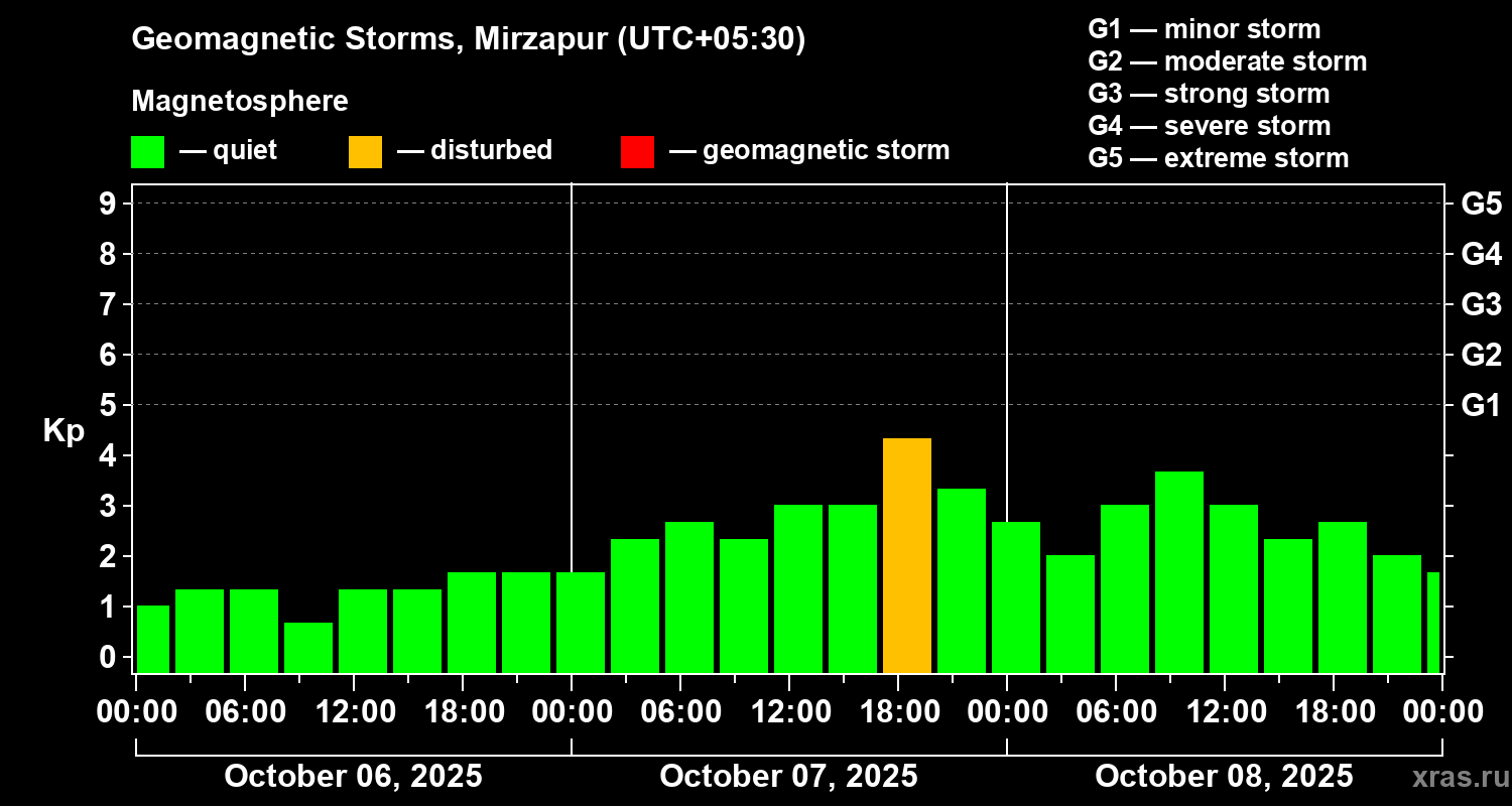 Geomagnetic storms in Mirzapur — Oct 08, 2025