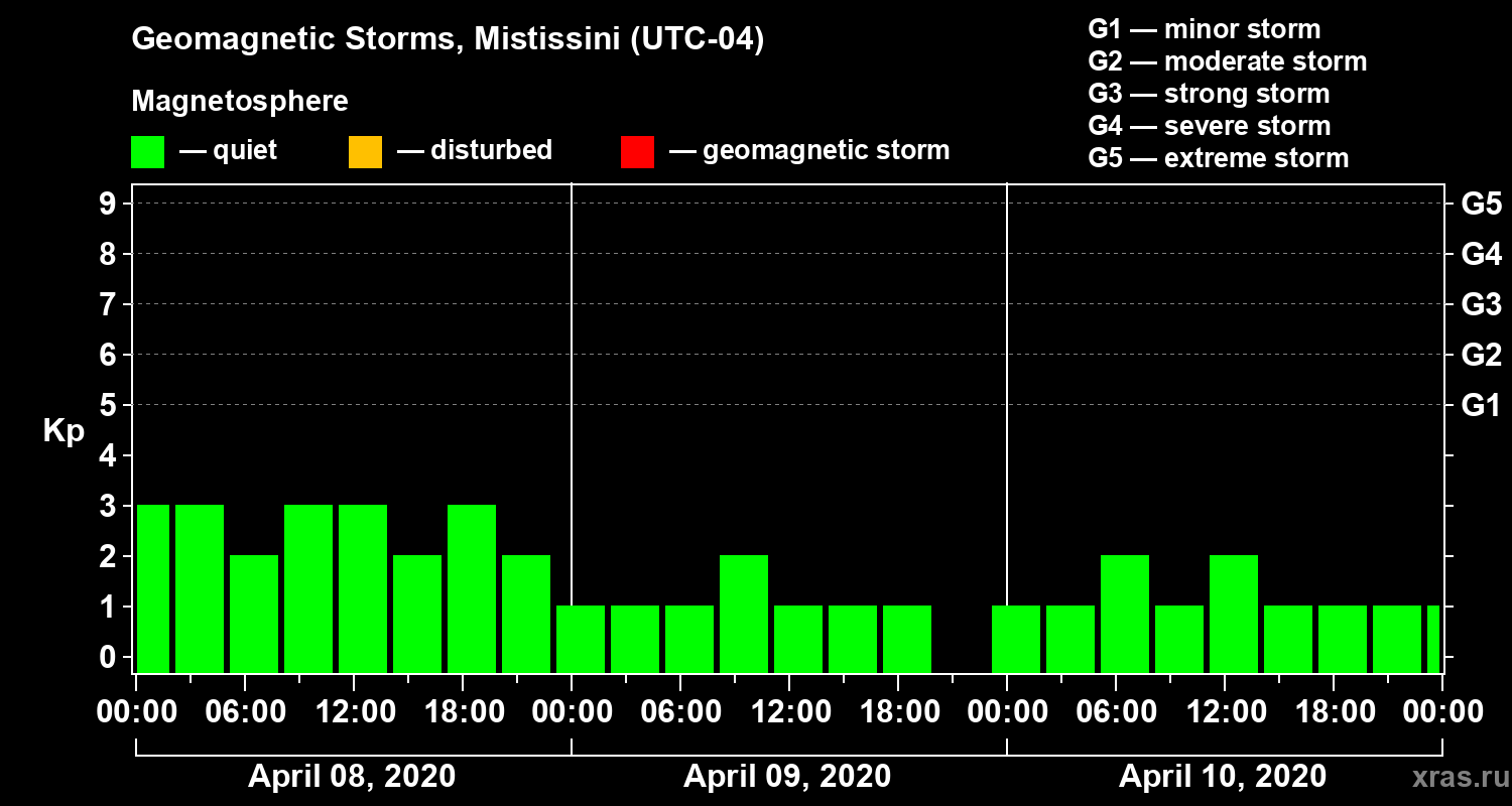 Geomagnetic storms in Mistissini on Apr 10, 2020
