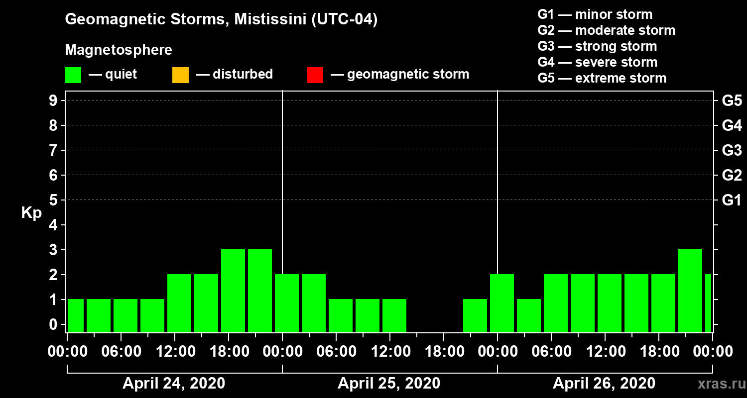Geomagnetic storms in Mistissini — Apr 26, 2020