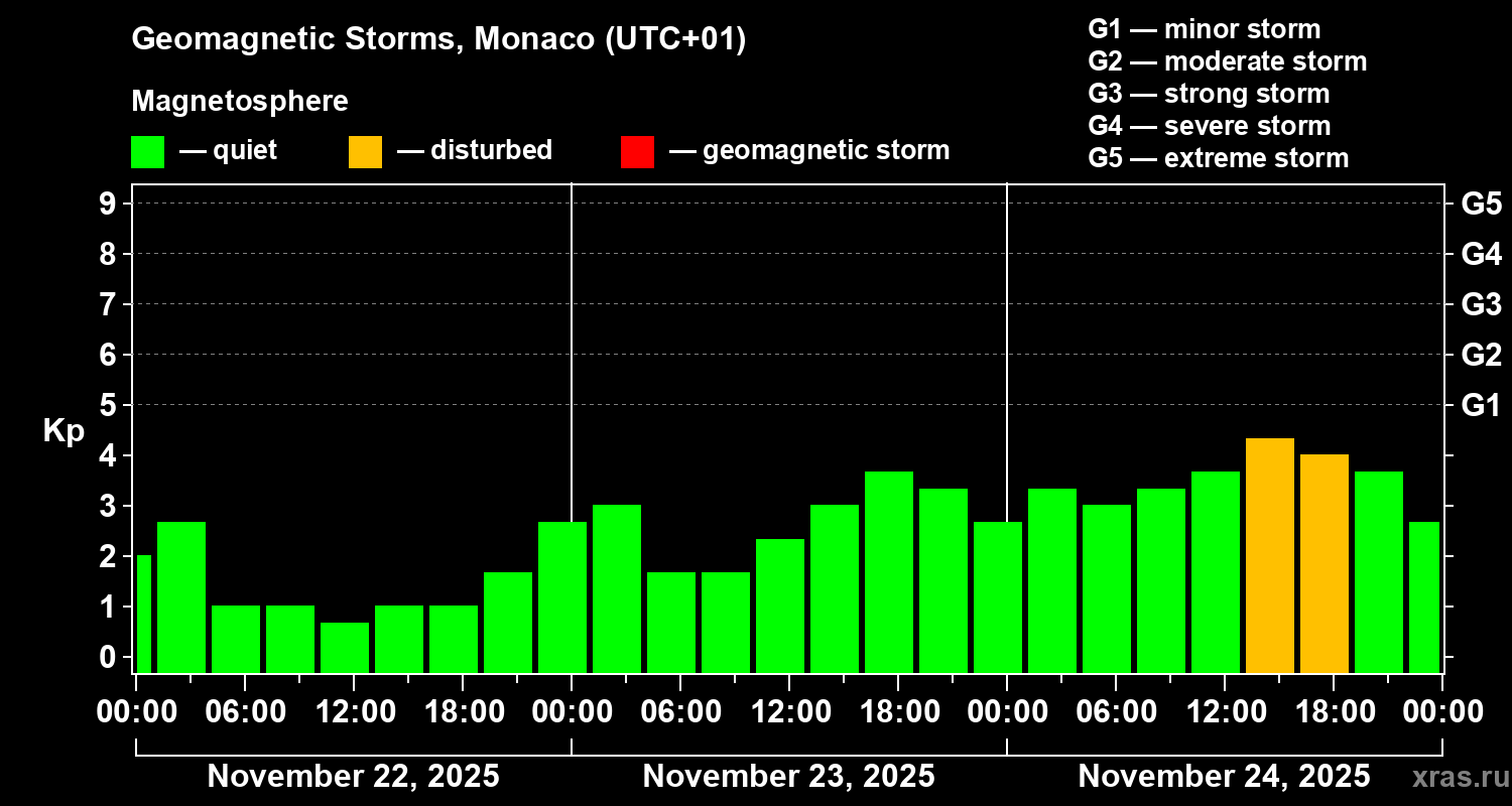 Geomagnetic storms in Monaco — Nov 24, 2025