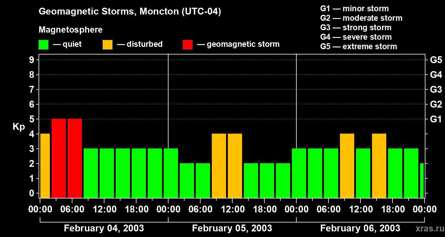 Geomagnetic storms in Moncton on Feb 06, 2003