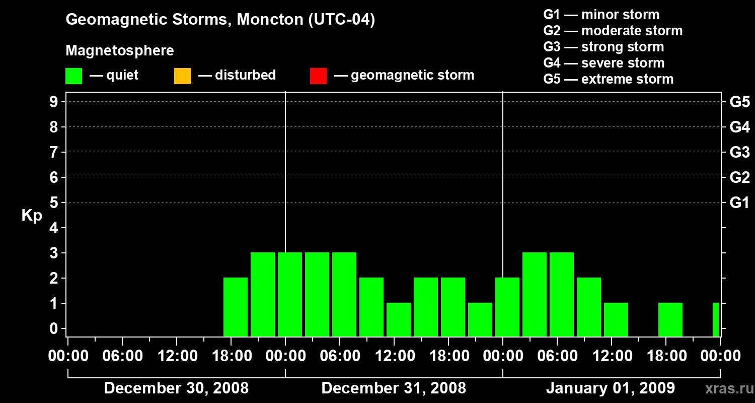 Geomagnetic storms in Moncton — Jan 01, 2009