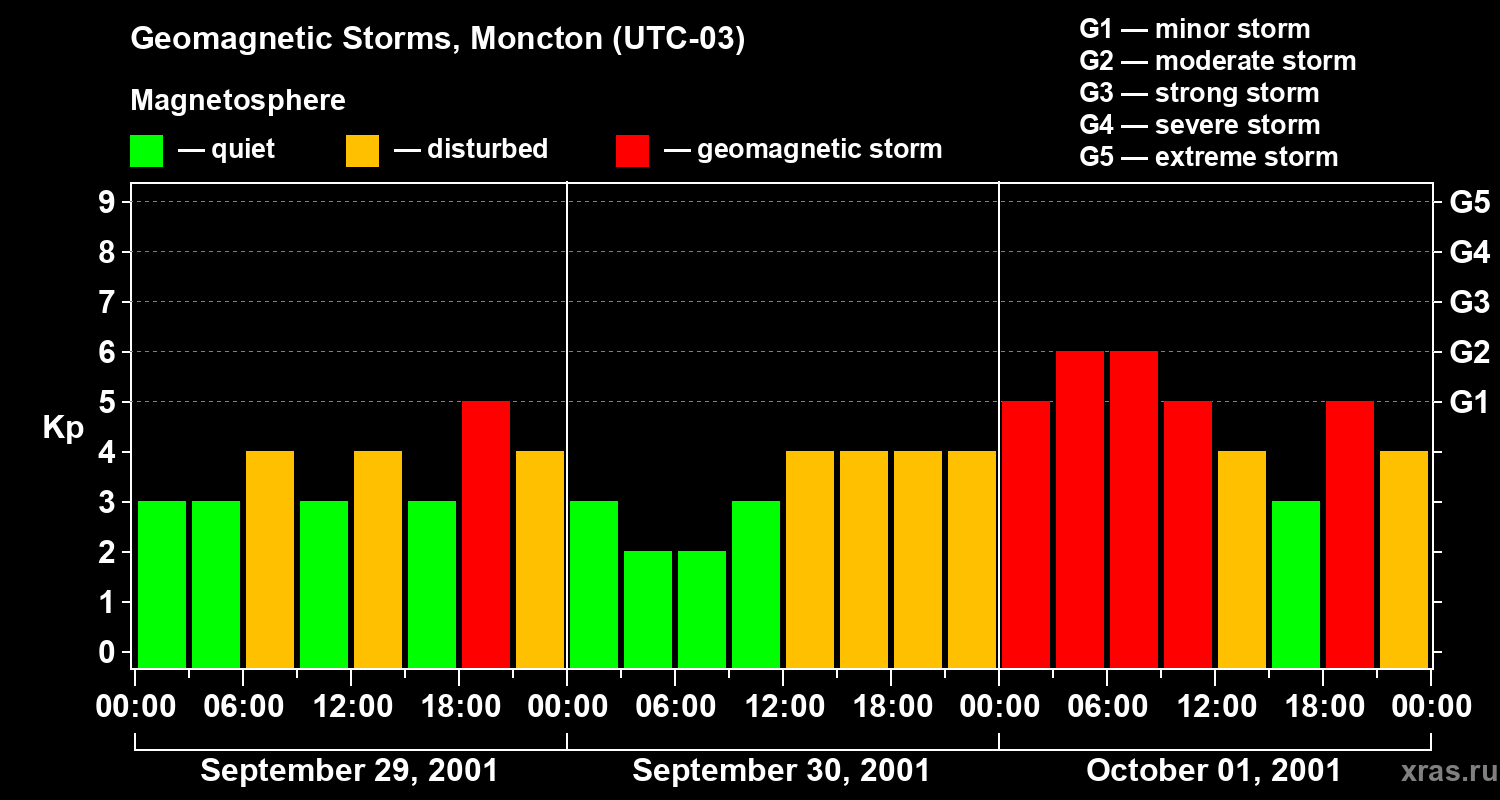 Geomagnetic storms in Moncton on Oct 01, 2001