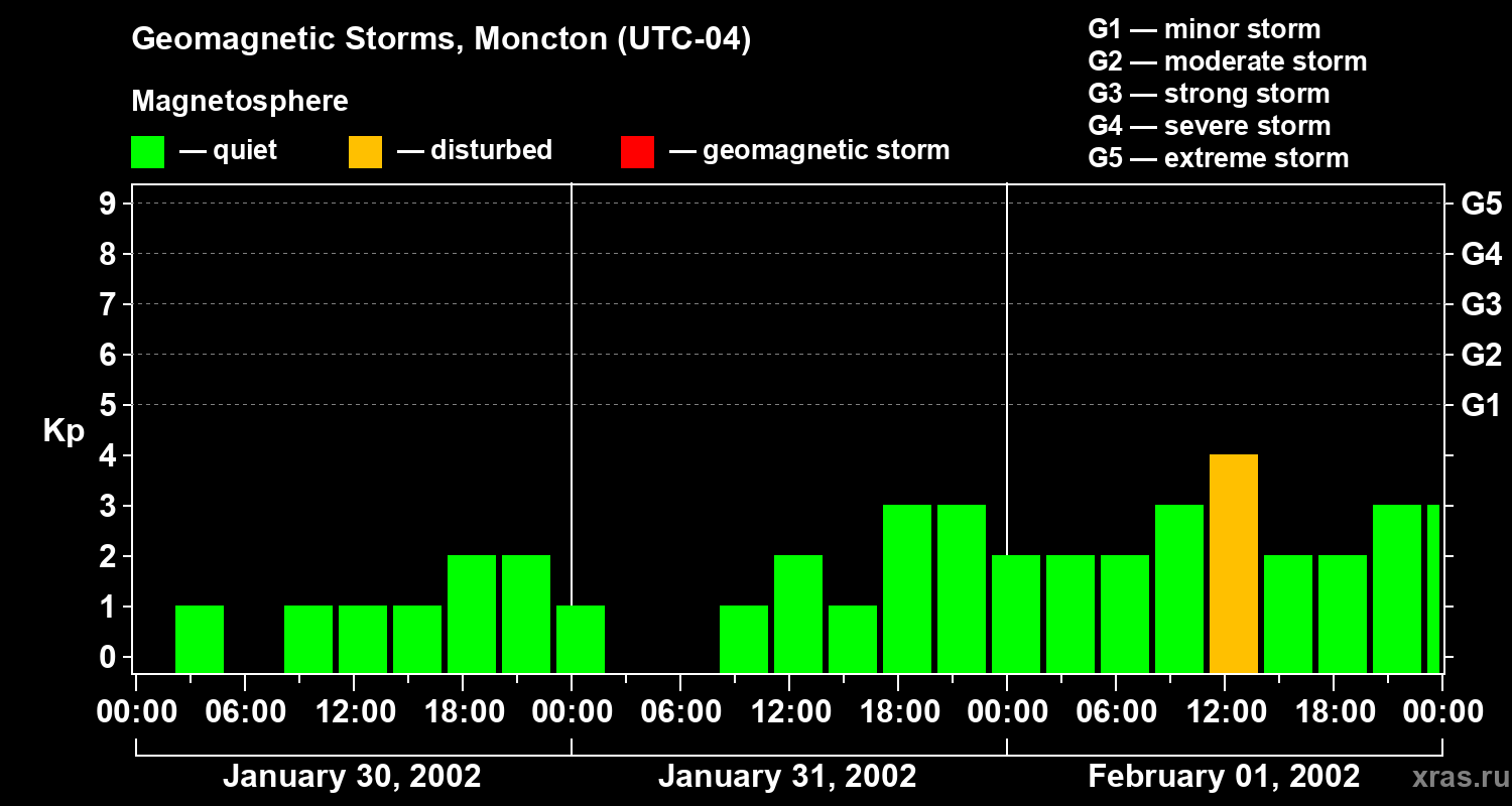 Geomagnetic storms in Moncton on Feb 01, 2002