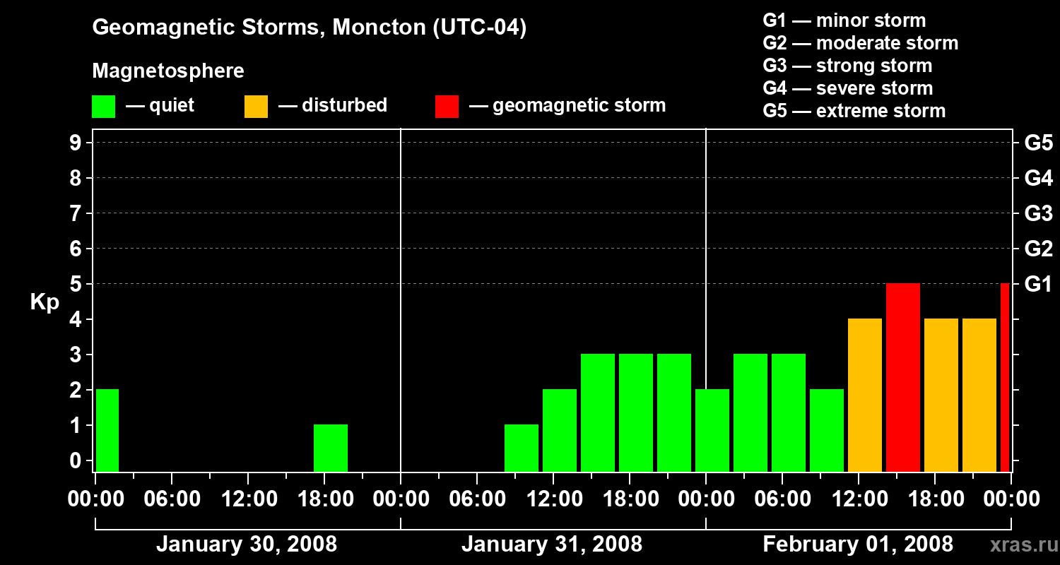Geomagnetic storms in Moncton — Feb 01, 2008