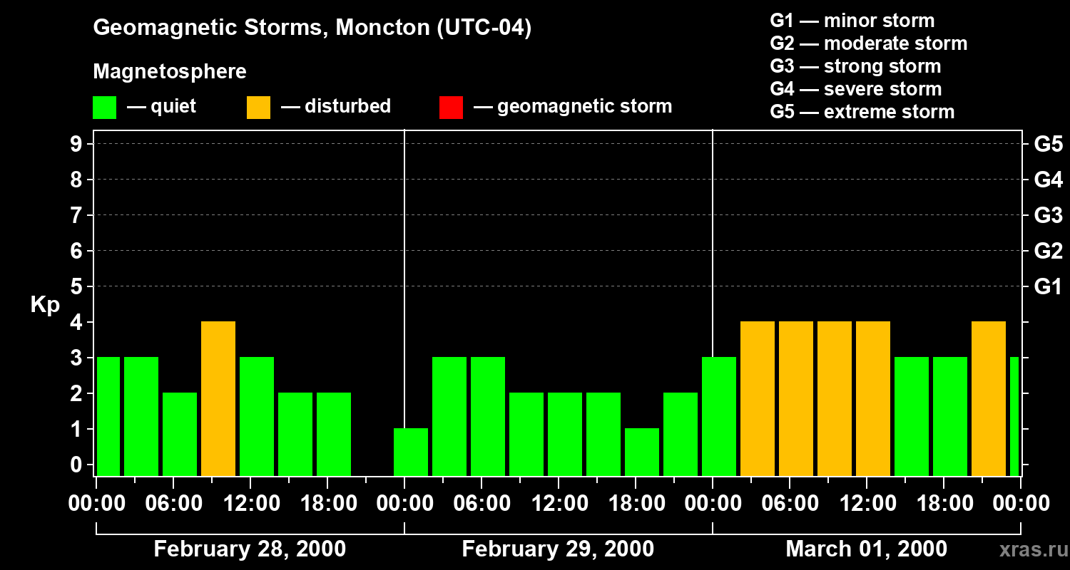 Geomagnetic storms in Moncton — Mar 01, 2000