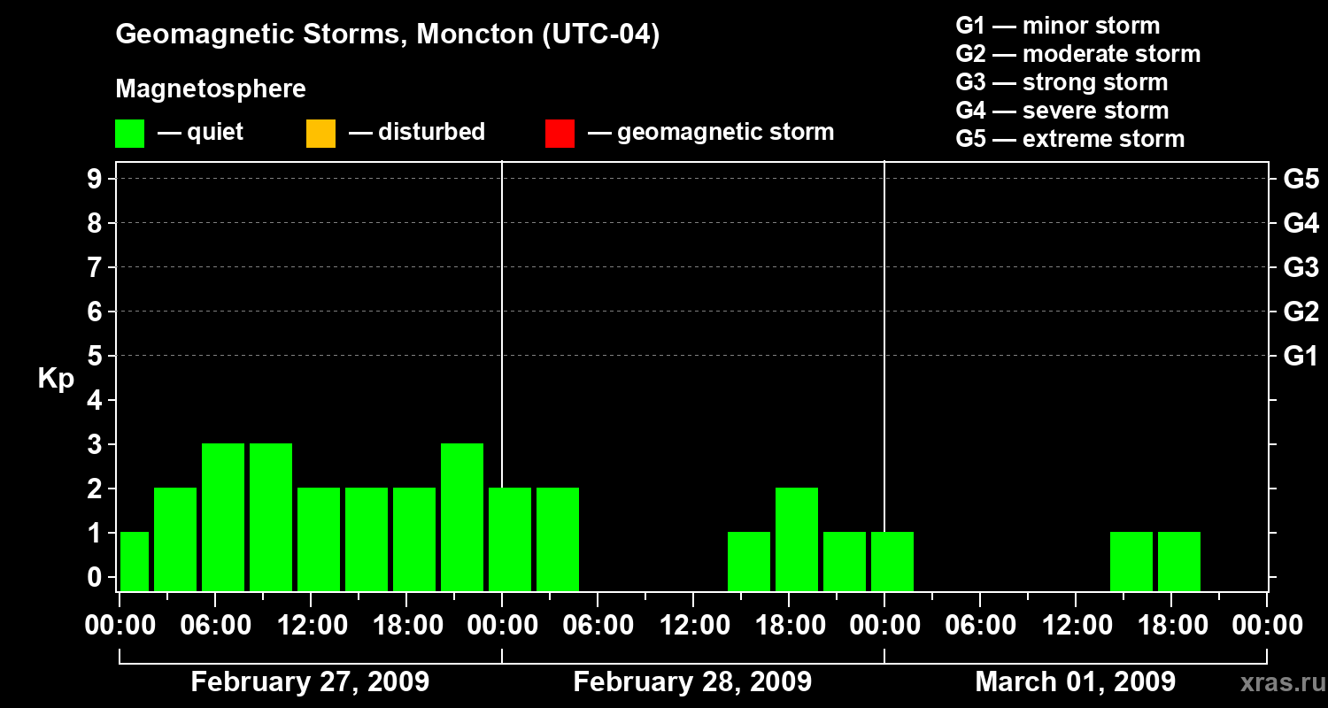 Geomagnetic storms in Moncton — Mar 01, 2009