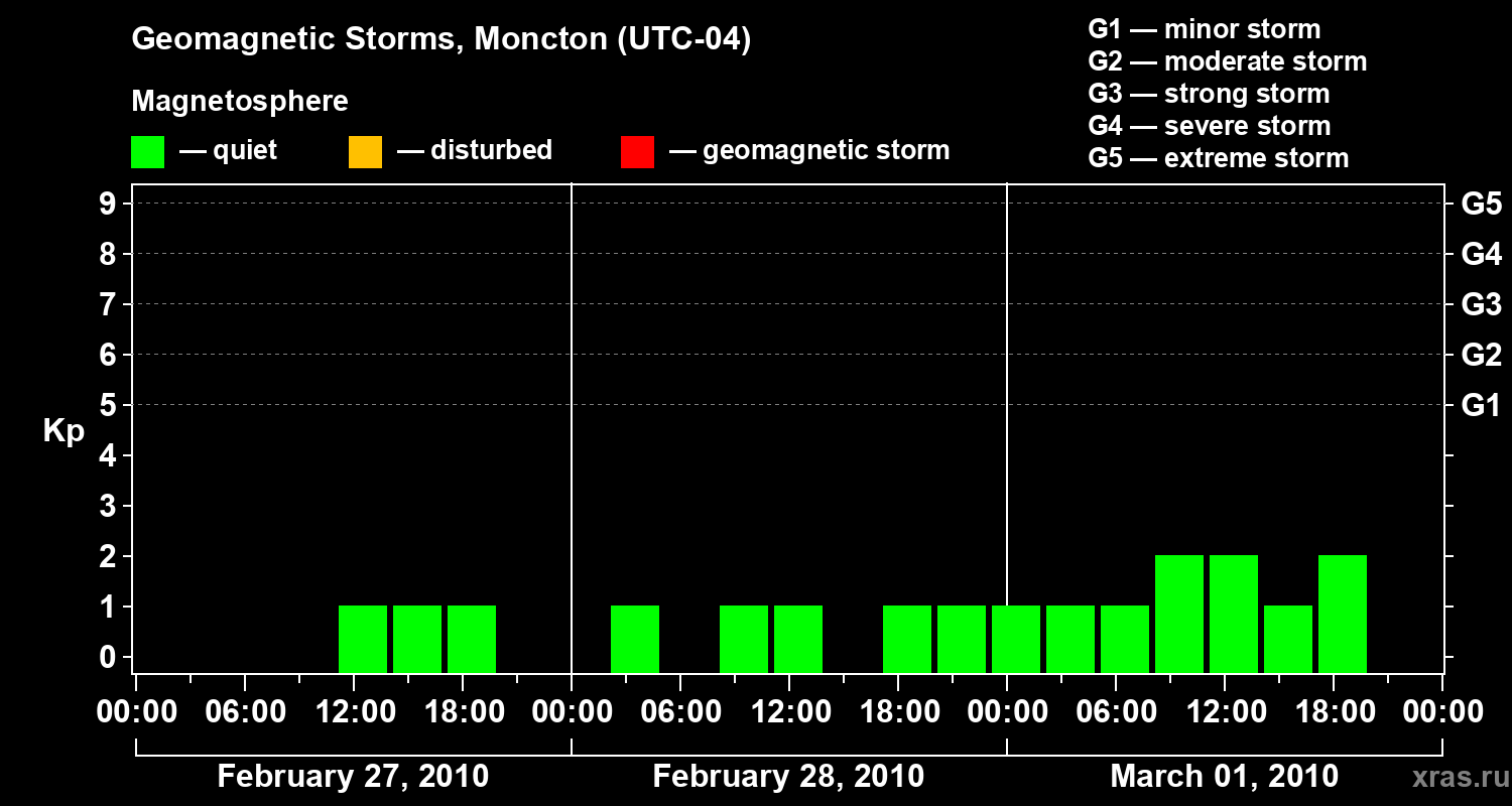 Geomagnetic storms in Moncton on Mar 01, 2010