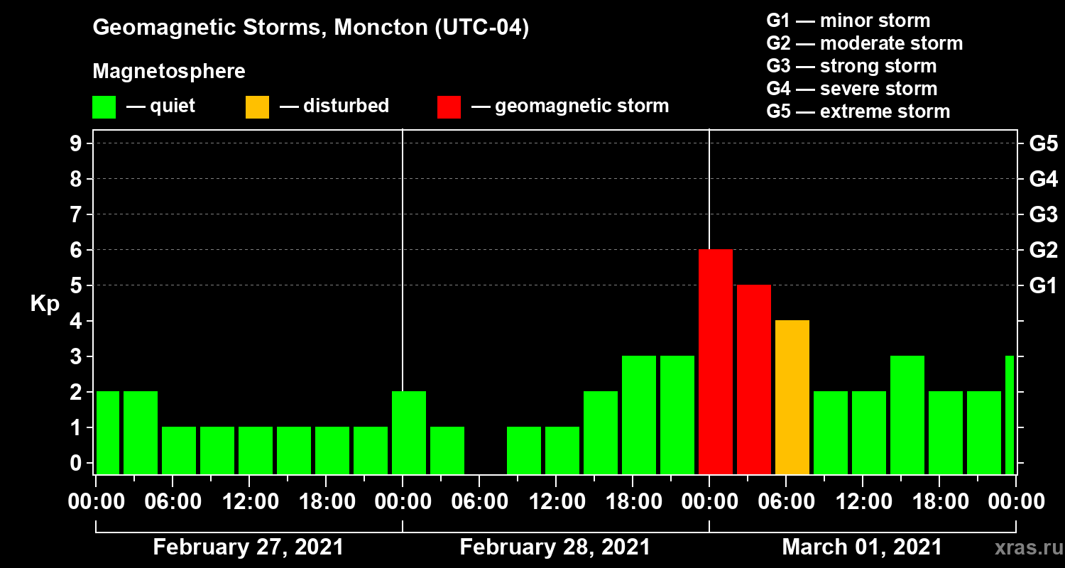 Geomagnetic storms in Moncton — Mar 01, 2021