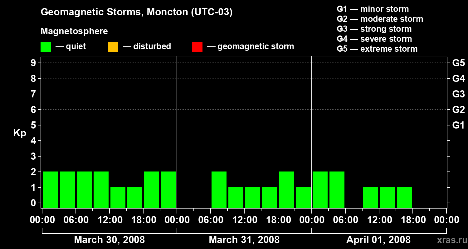 Geomagnetic storms in Moncton on Apr 01, 2008