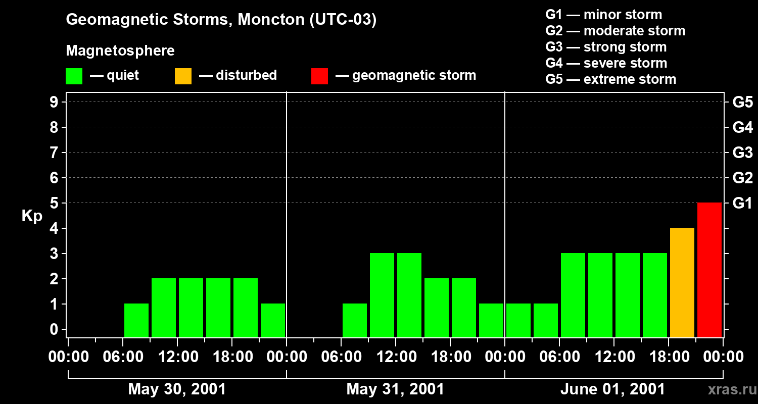 Geomagnetic storms in Moncton — Jun 01, 2001