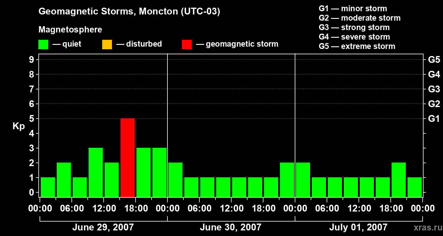Geomagnetic storms in Moncton — Jul 01, 2007