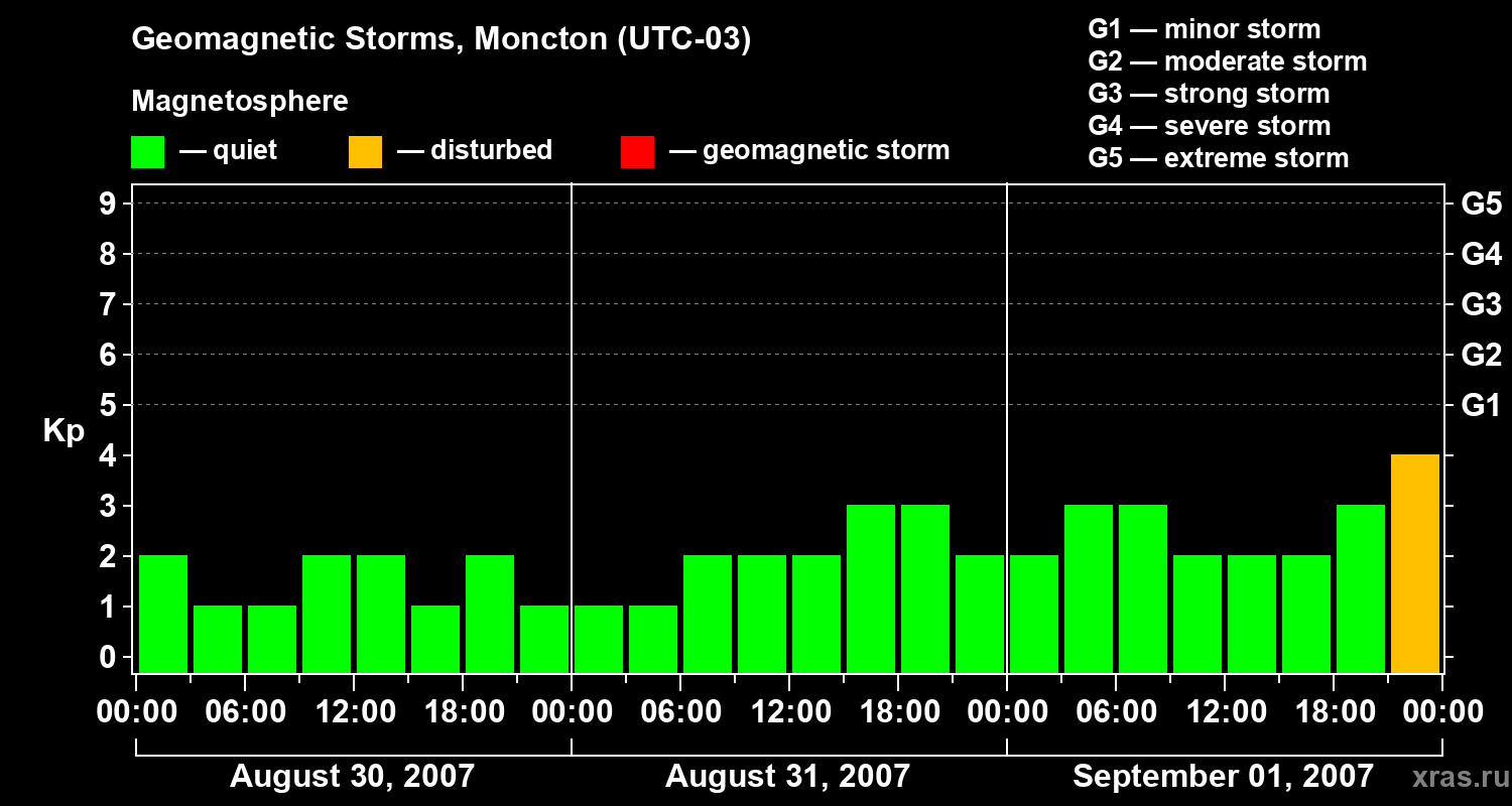 Geomagnetic storms in Moncton — Sep 01, 2007