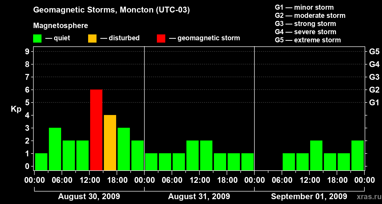 Geomagnetic storms in Moncton — Sep 01, 2009