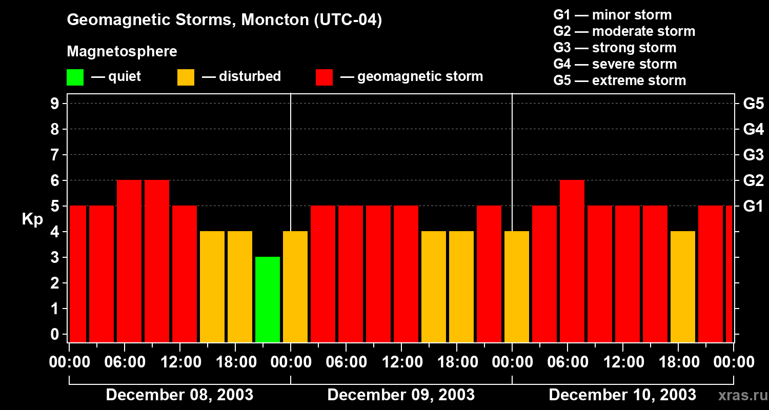 Geomagnetic storms in Moncton on Dec 10, 2003