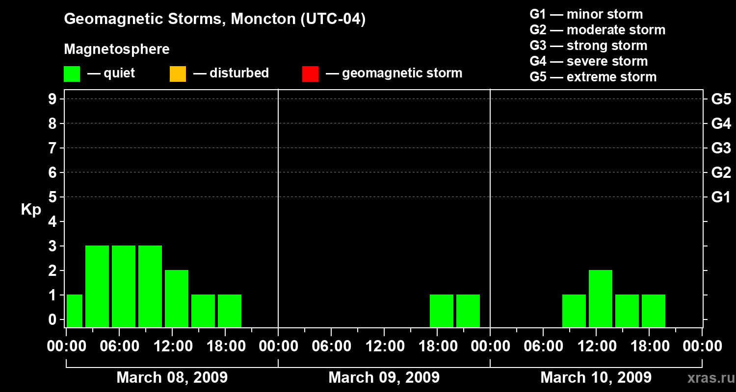 Geomagnetic storms in Moncton — Mar 10, 2009