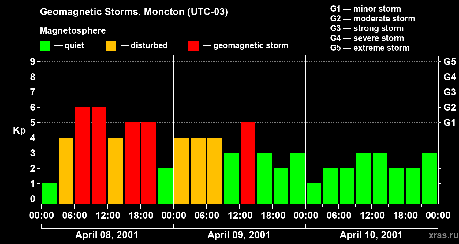 Geomagnetic storms in Moncton on Apr 10, 2001