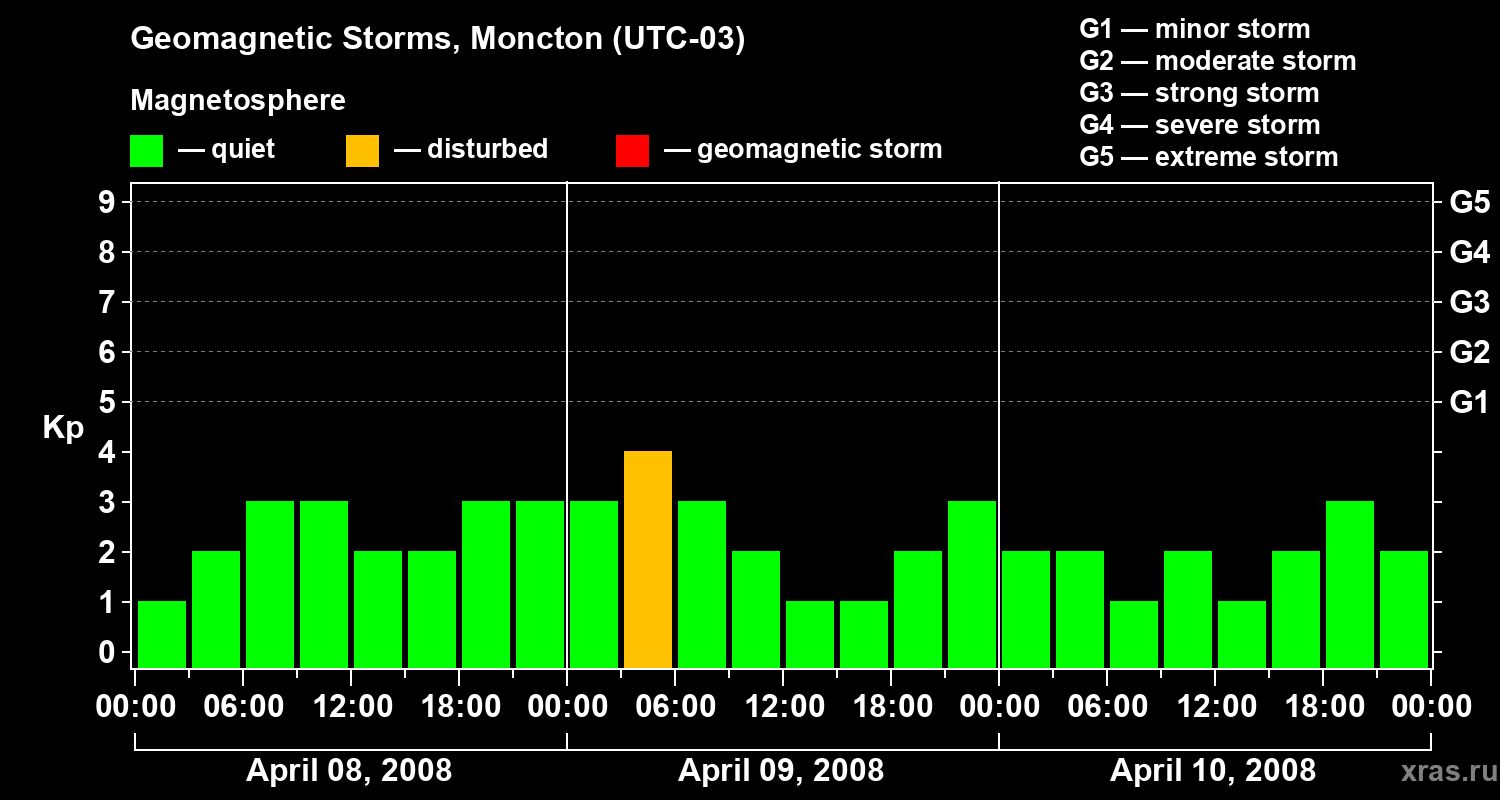 Geomagnetic storms in Moncton — Apr 10, 2008