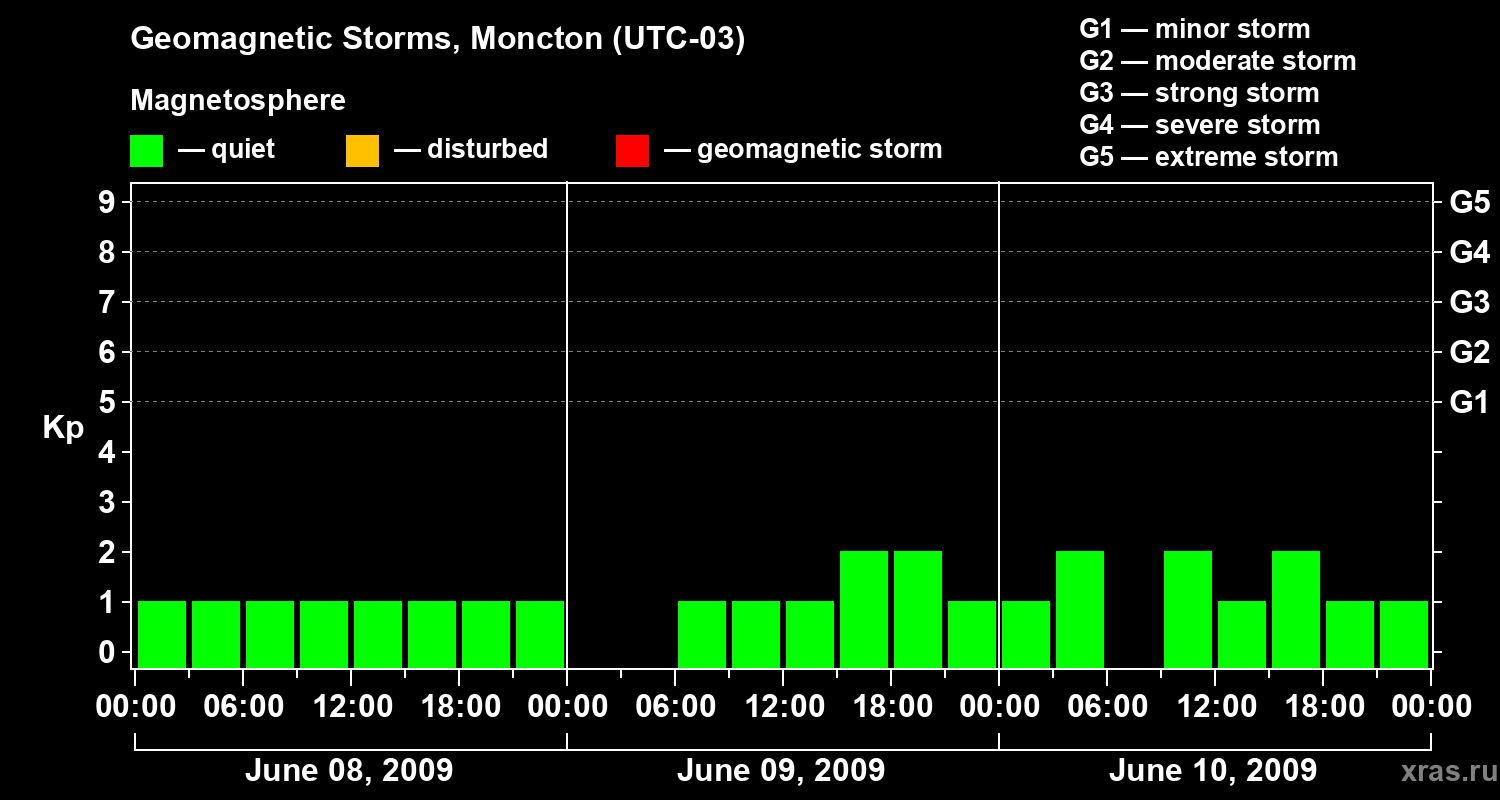 Geomagnetic storms in Moncton on Jun 10, 2009