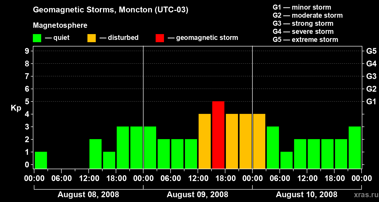 Geomagnetic storms in Moncton — Aug 10, 2008