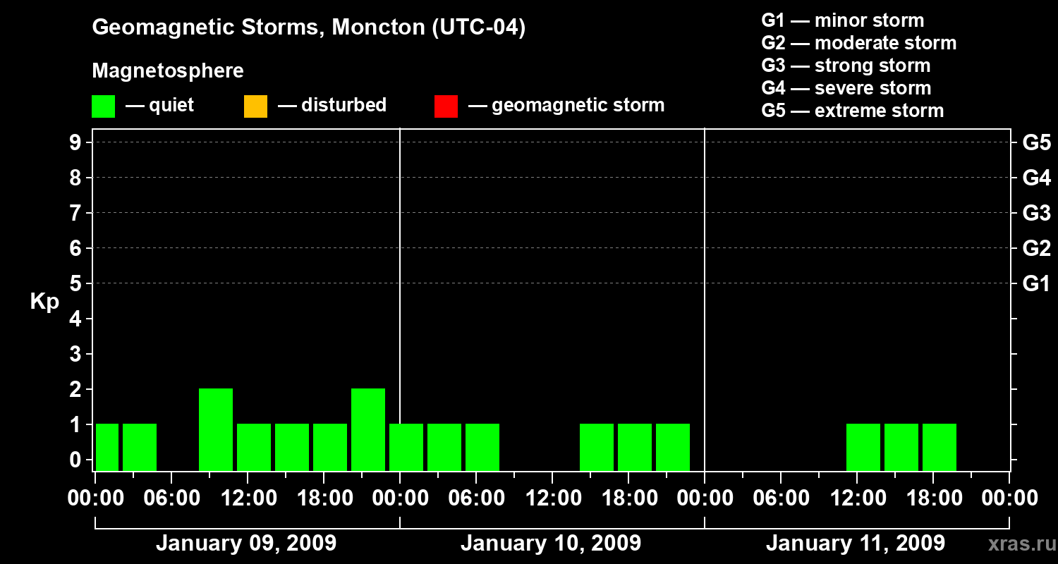 Geomagnetic storms in Moncton in January 2009
