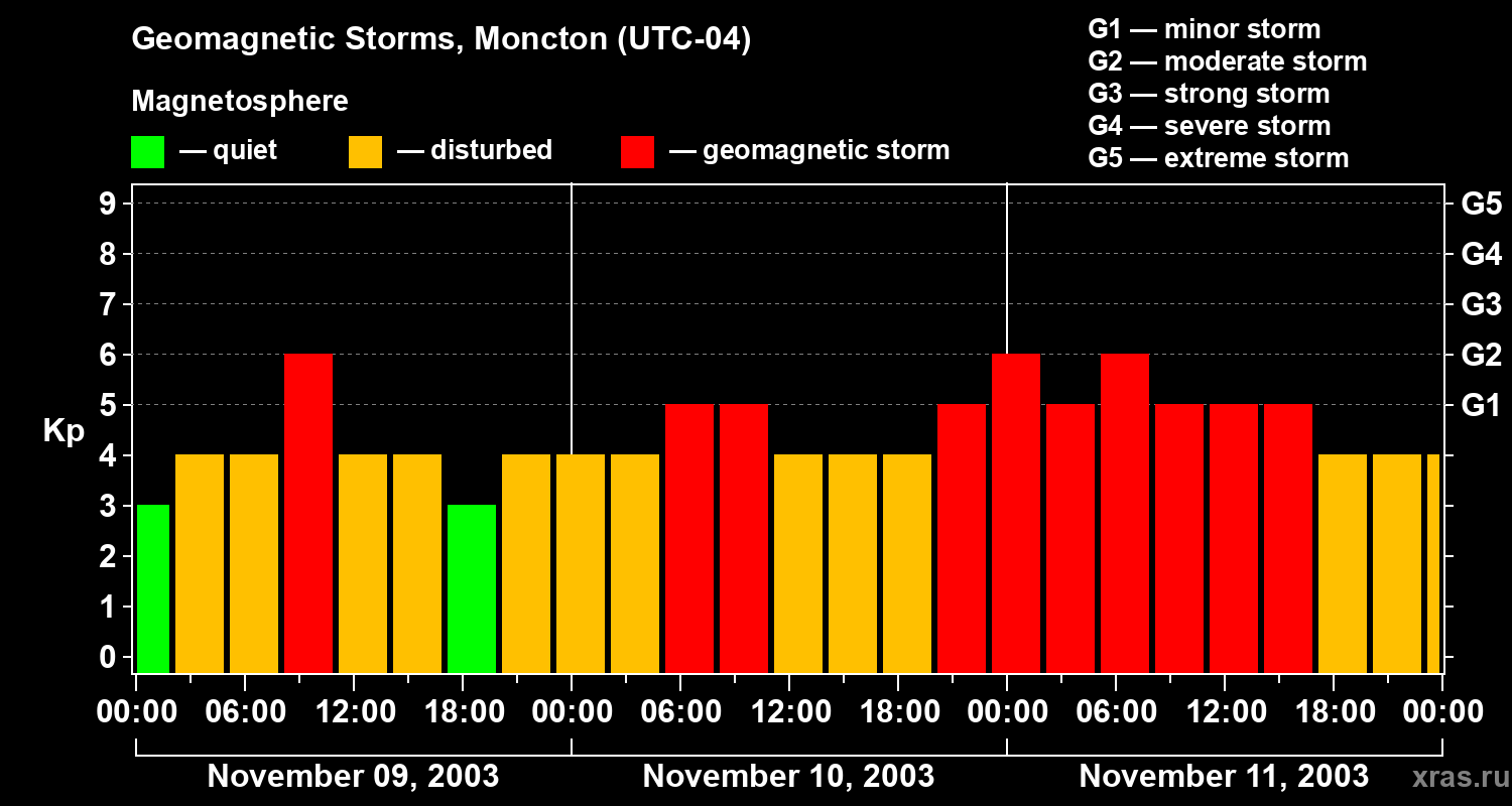 Geomagnetic storms in Moncton on Nov 11, 2003
