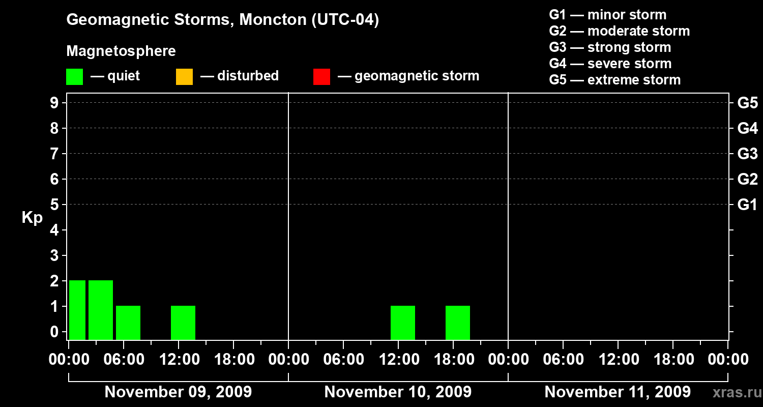 Geomagnetic storms in Moncton on Nov 11, 2009
