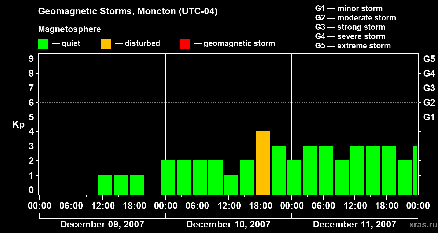 Geomagnetic storms in Moncton on Dec 11, 2007