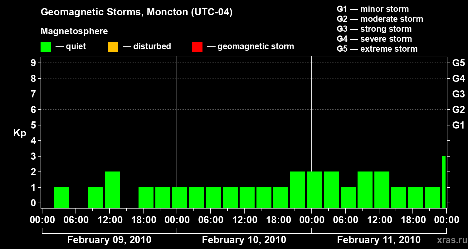 Geomagnetic storms in Moncton — Feb 11, 2010