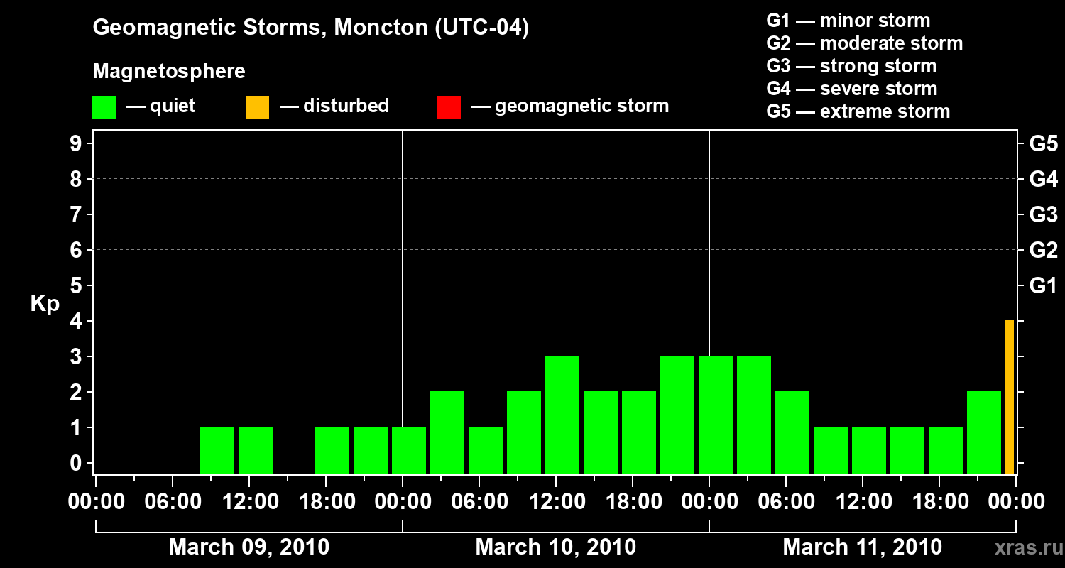 Geomagnetic storms in Moncton — Mar 11, 2010